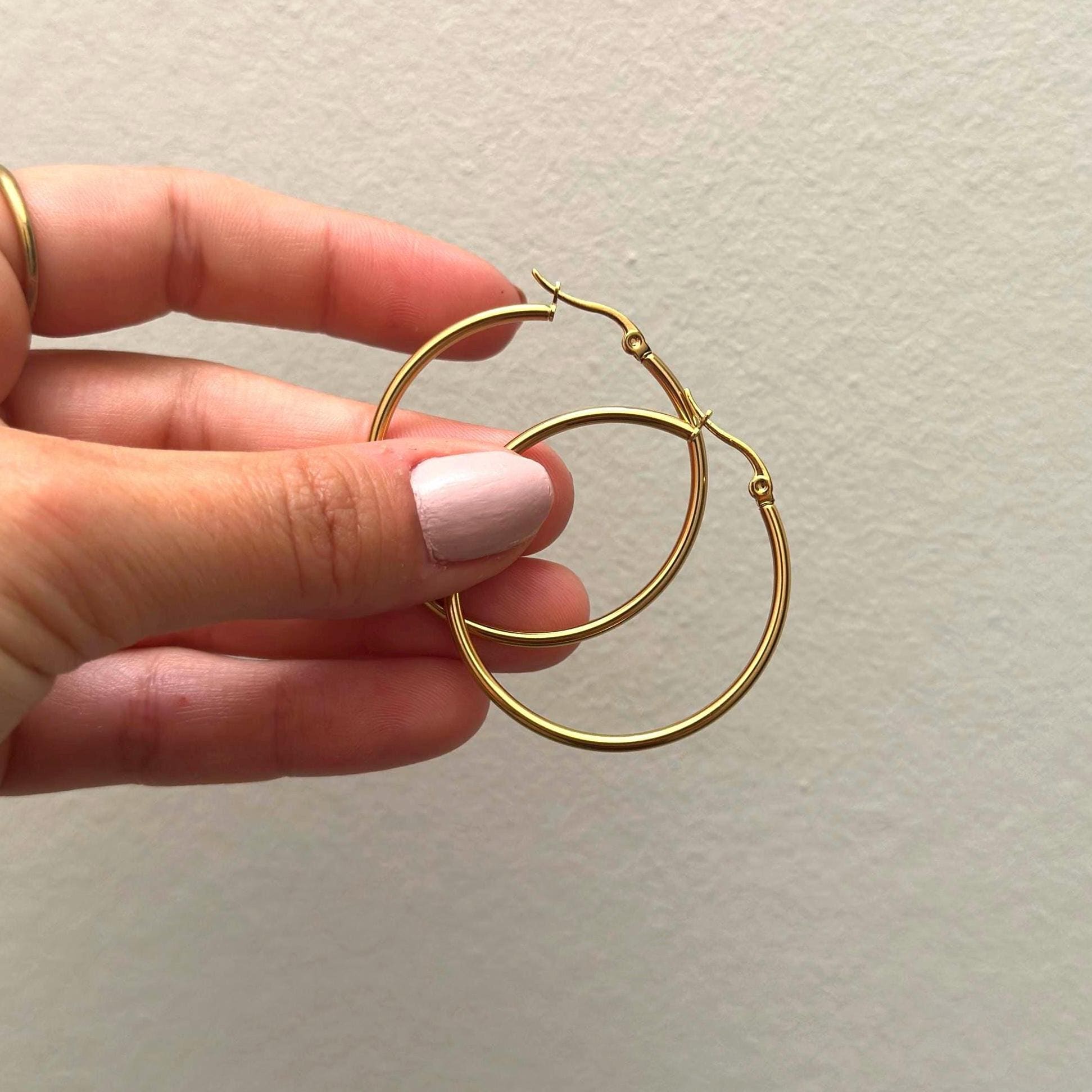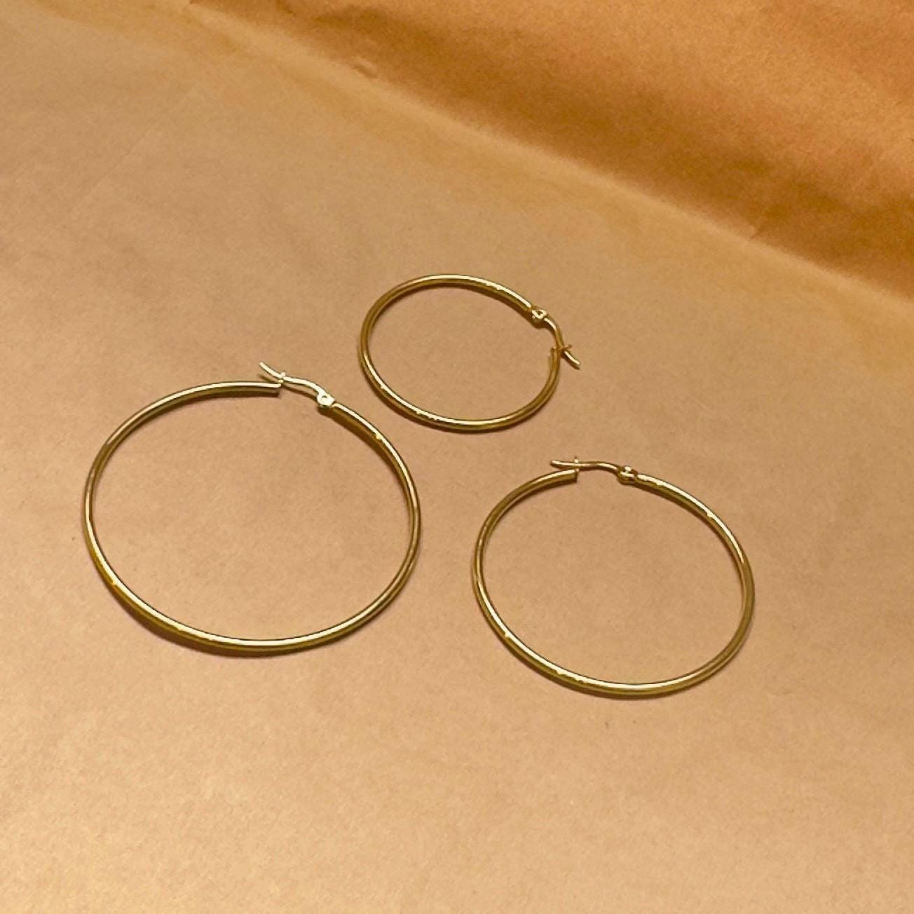 Gold Stainless Steel Hoop Earrings – Unisex Circle Hoops in Small, Medium and Large Sizes ✨