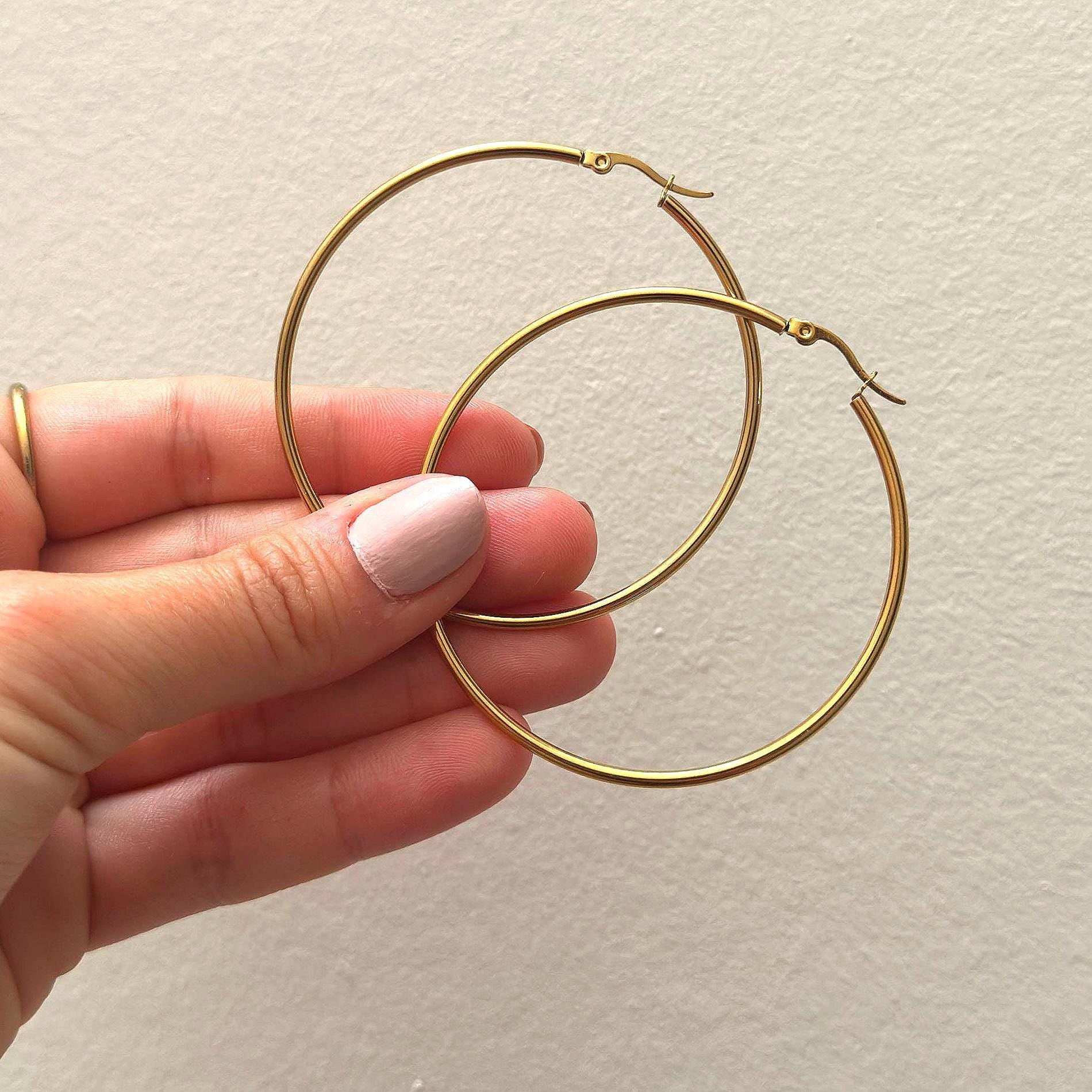 Gold Stainless Steel Hoop Earrings – Unisex Circle Hoops in Small, Medium and Large Sizes ✨